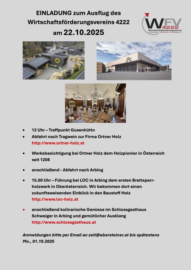 Dieses Mal ging es nach Tragwein zur Werksbesichtigung bei Fa. Ortner Holz, dem Holzpionier in Österreich seit 1208 in 6. Generation. Es begrüßte uns Herr Rudolf Ortner und begeisterte mit seinem Sinn für Nachhaltigkeit, Regionalität und seinem Innovationsgeist.